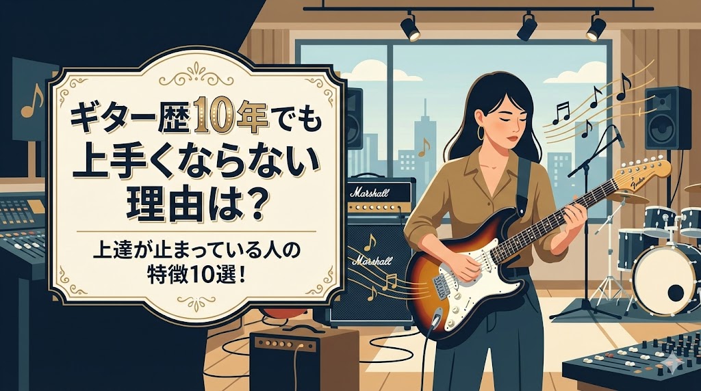 この記事では、ギター歴10年という節目で上達が止まってしまう人の共通点と、その壁を壊すための具体的な練習方法をお伝えします。