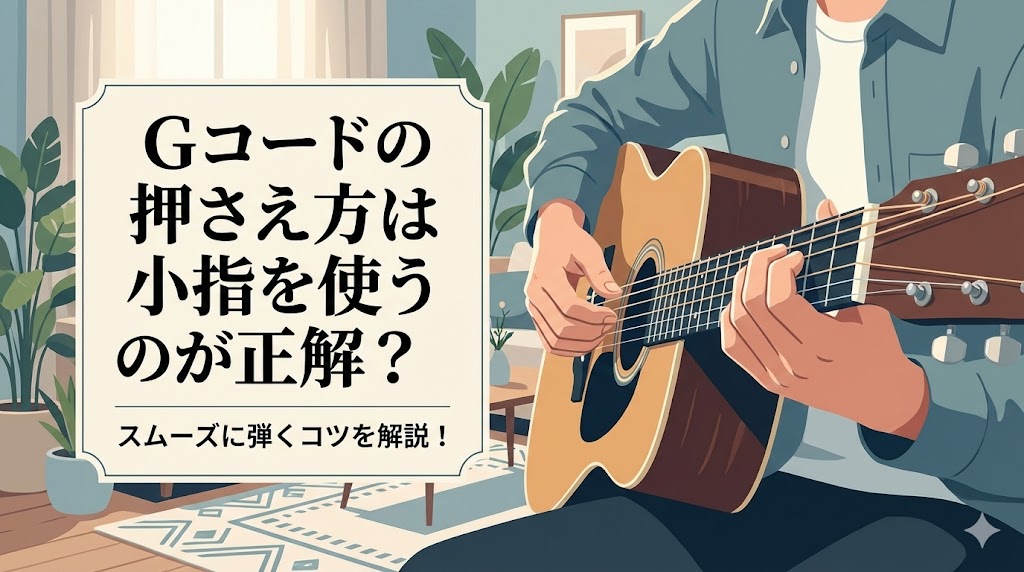 この記事では、教則本によってバラバラなGコードの押さえ方について、小指を使うべき理由と、指が届かない時の解決策を具体的に紹介します。